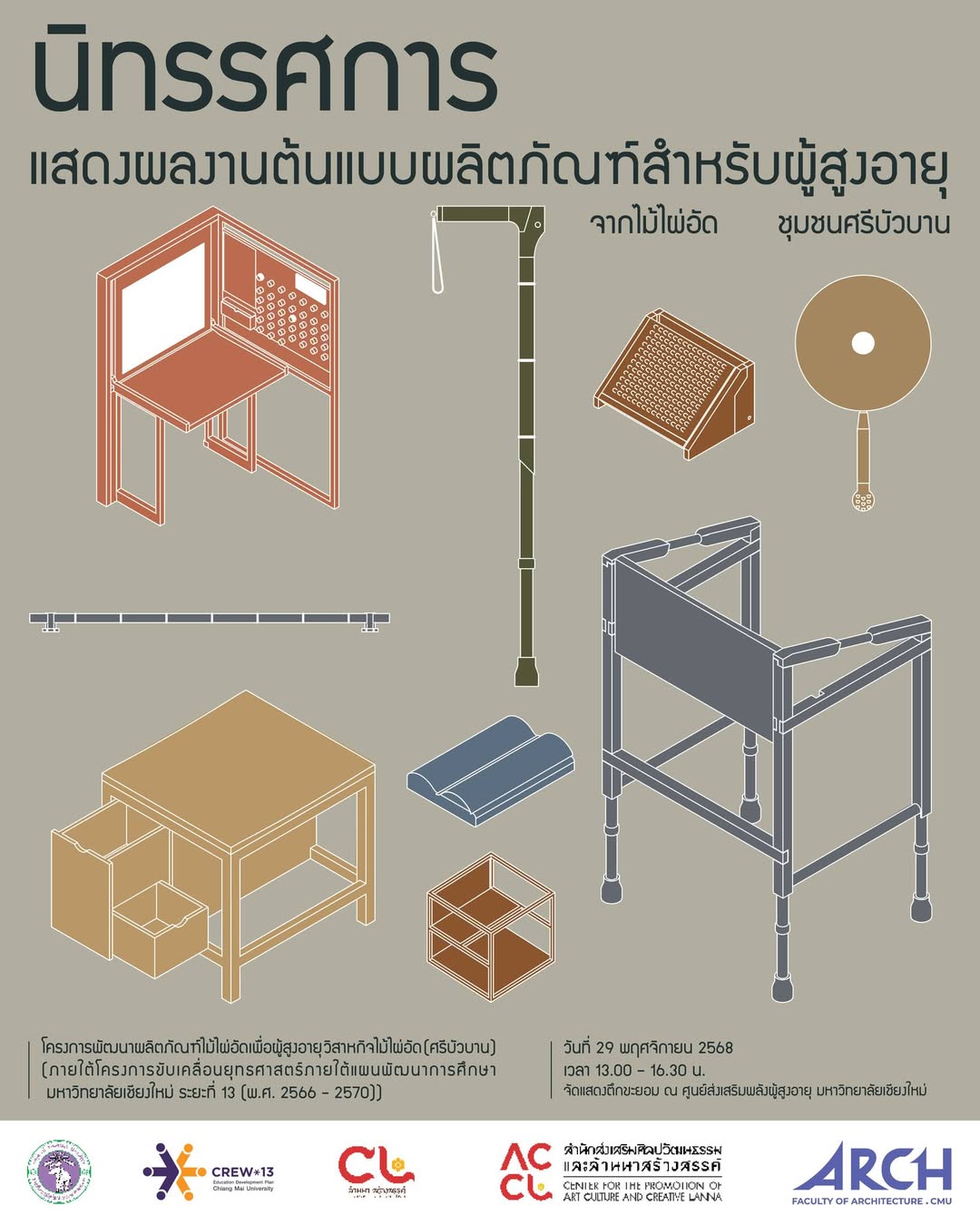 โครงการพัฒนาผลิตภัณฑ์ไม้ไผ่อัดเพื่อผู้สูงอายุ วิสาหกิจไม้ไผ่อัด (ศรีบัวบาน) คณะสถาปัตยกรรมศาสตร์ มหาวิทยาลัยเชียงใหม่