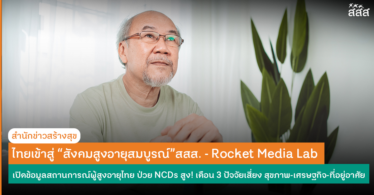 ไทยเข้าสู่สังคมสูงอายุสมบูรณ์เต็มรูปแบบ!!! สสส. สานพลัง Rocket Media Lab เปิดข้อมูลสถานการณ์ผู้สูงอายุ เตือน 3 ปัจจัยเสี่ยง สุขภาพ-เศรษฐกิจ-ที่อยู่อาศัย ป่วย NCDs สูง ขาดเงินออม แถม 90% บ้านไม่เอื้อต่อการใช้ชีวิต กดดันให้สังคมไทยสู่ภาวะเปราะบาง แนะป้องกันปัญหาสุขภาพระยะยาว พร้อมก้าวสู่วัยสูงอายุด้วยความภาคภูมิใจ